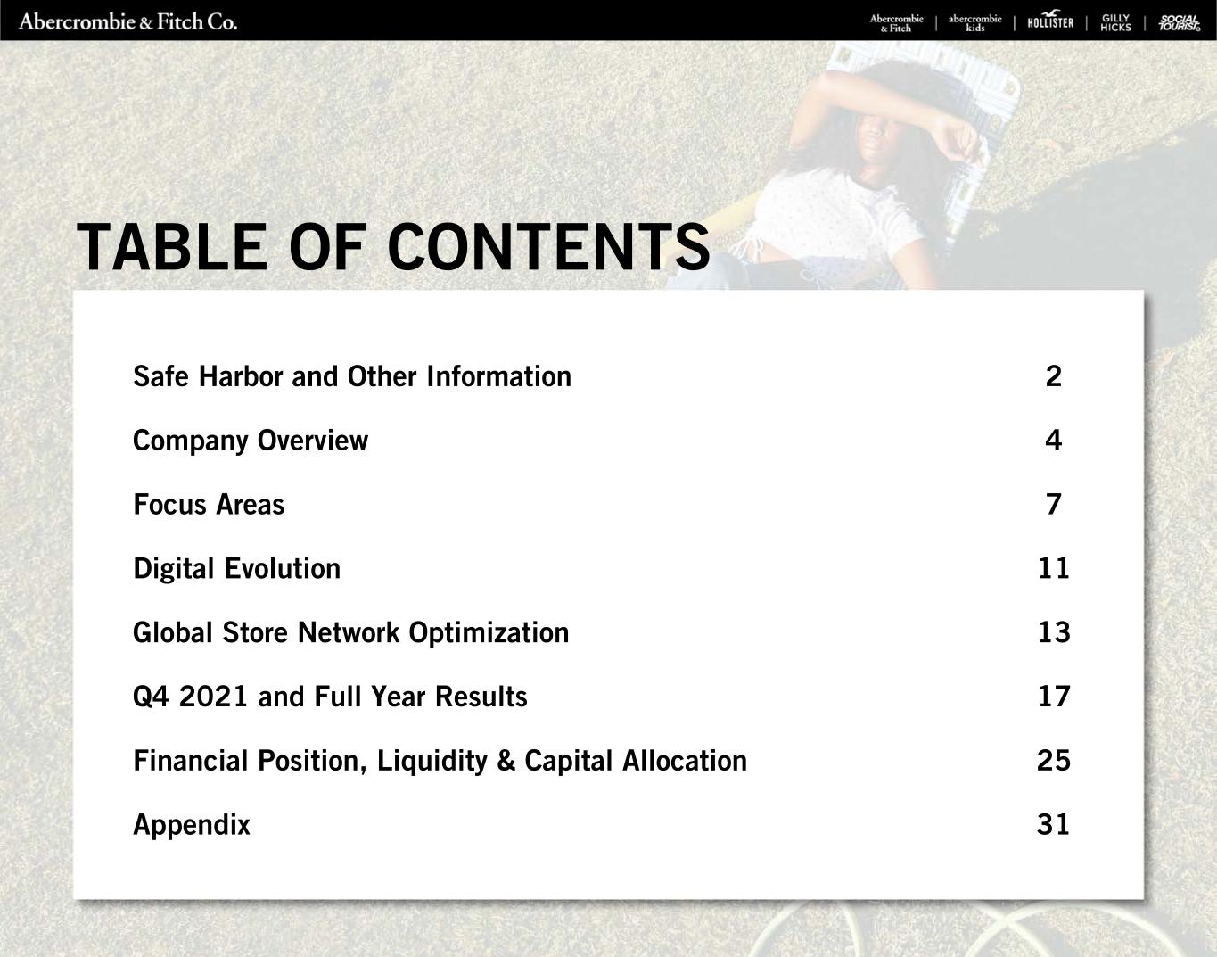 Safe Harbor and Other Information 2 Company Overview 4 Focus Areas 7 Digital Evolution 11 Global Store Network Optimization 13 Q4 2021 and Full Year Results 17 Financial Position, Liquidity & Capital Allocation 25 Appendix 31 TABLE OF CONTENTS